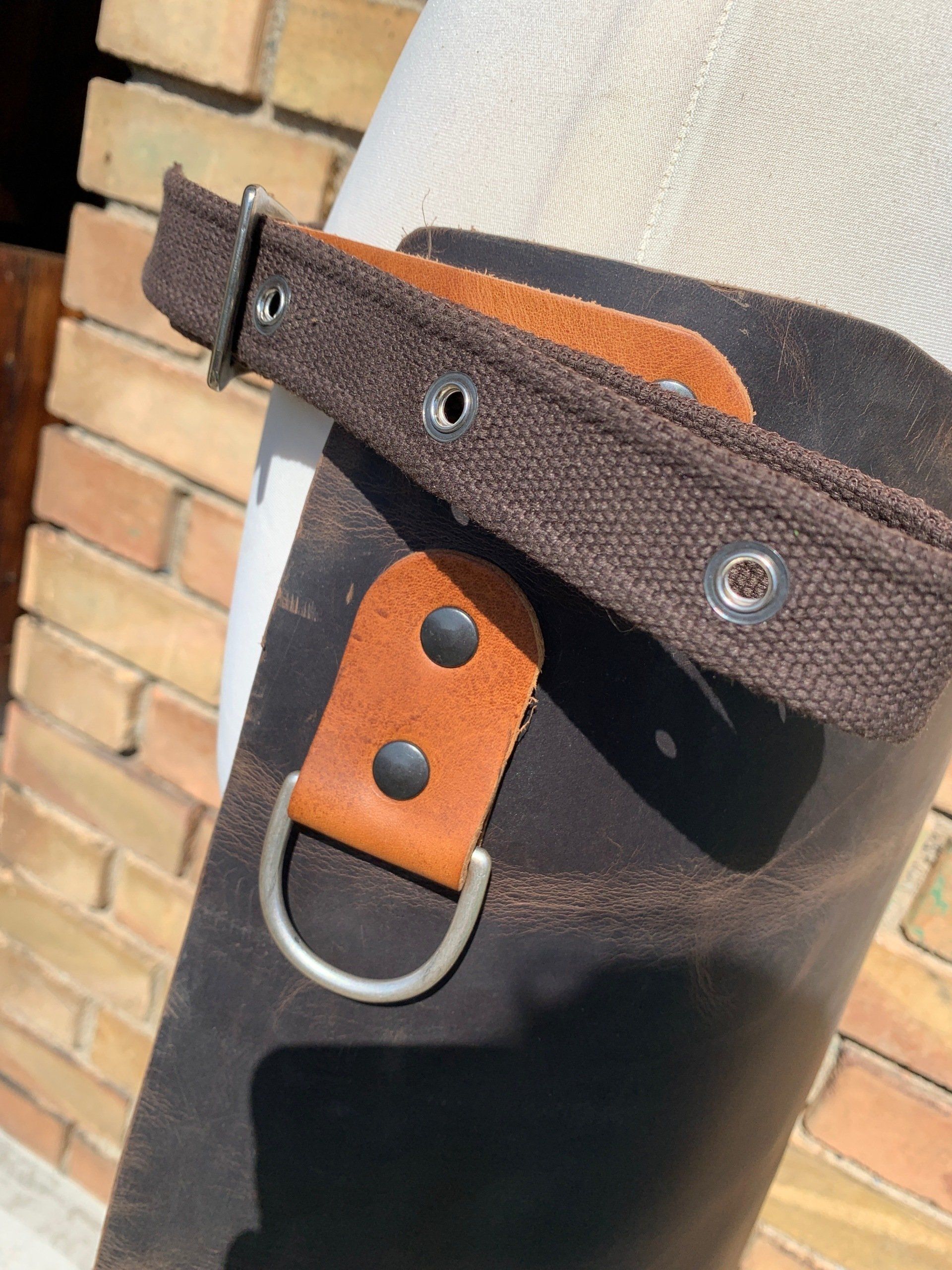Unsere Schürze ADLER Y ist zudem durch die Anordnung der Schultergurte in Y-Form extrem Entspannend im Hals- und Rückenbereich und sehr Bewegungsfreudig. Einmal auf sich eingestellt ist das An- und Ablegen sehr unkompliziert. Mit etwas Lederpflege ein Arbeitsleben lang.