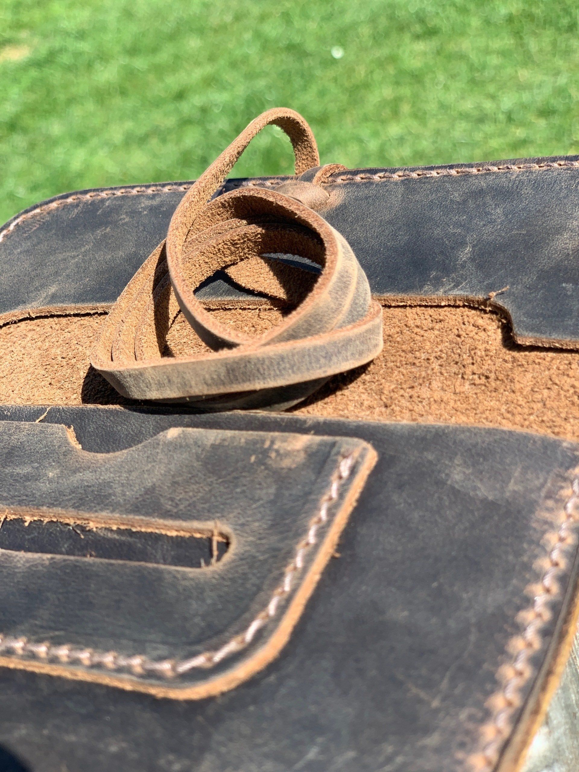 Das Leder ist wie das der Schürzen, zunächst noch etwas fest im Griff und scheinbar unnachgiebig, doch schon nach kurzer Zeit passt sich der Handschmeichler dem Träger an, bekommt eine herrliche Patina und wird zum treuen Begleiter!